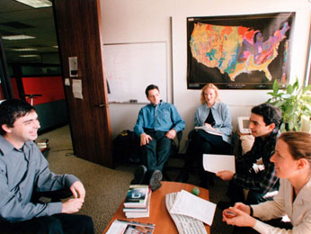 by Larry Page and Sergey Brin , two Ph.D. students at Stanford